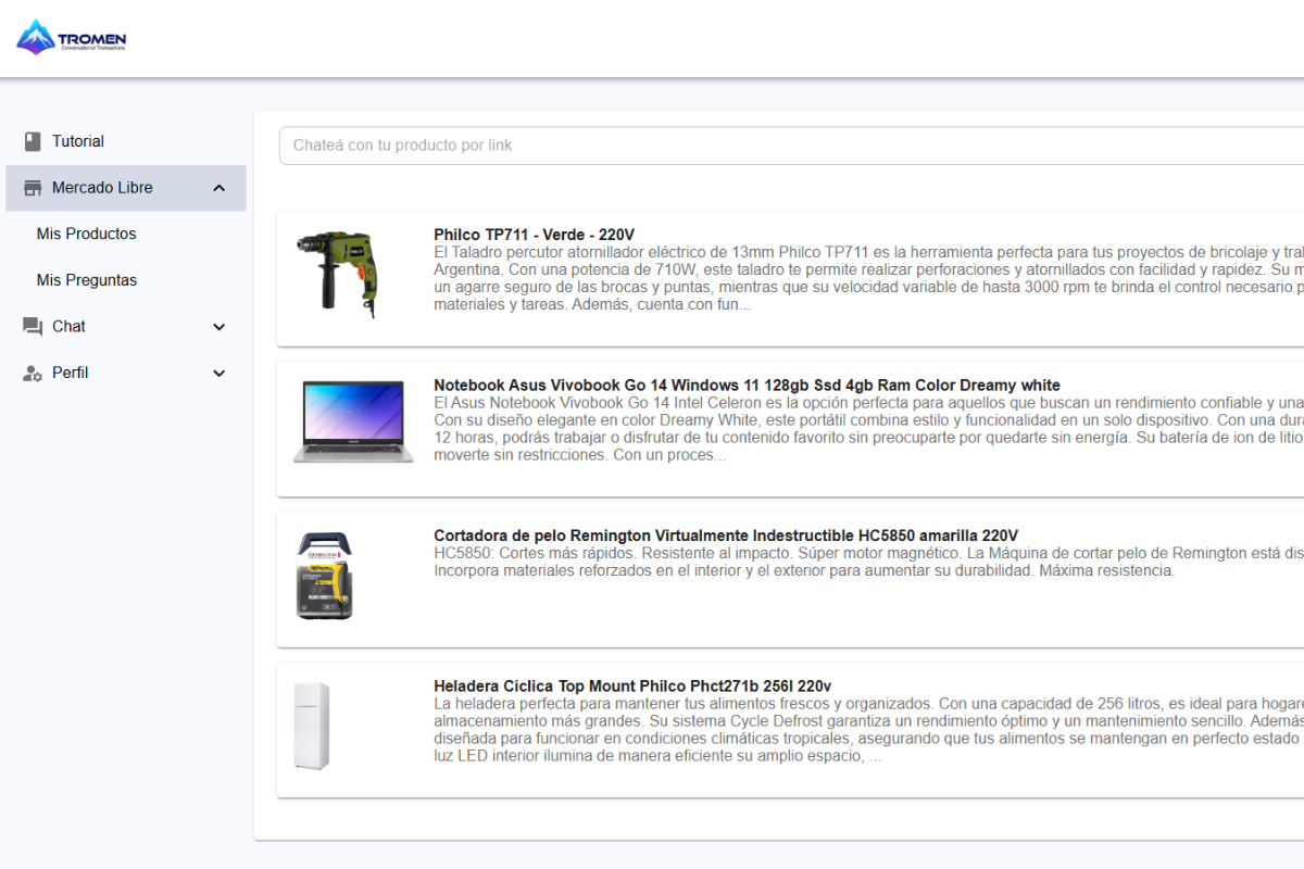 - Connection with Mercado Libre API